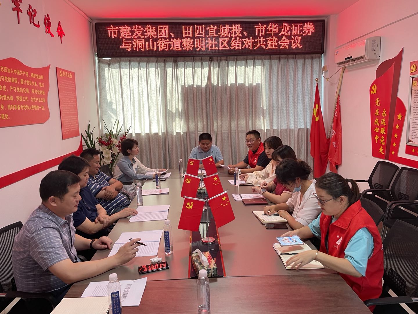 為認真貫徹落實市委市政府關(guān)于創(chuàng)建全國文明城市工作部署,持續(xù)加大與結(jié)對社區(qū)結(jié)對共建力度,9月10日下午,建發(fā)集團與田區(qū)四宜建投集團、華龍證券、田區(qū)洞山街道黎明社區(qū)召開聯(lián)席會議,就結(jié)對共建的工作重點、共建方案等開展調(diào)研座談。建發(fā)集團黨委副書記高友祿、四宜建投集團董事長余宏偉、華龍證券淮南朝陽西路證券營業(yè)部總經(jīng)理姚登輝、洞山街道黨工委副書記胡傳松、黎明社區(qū)黨總支書記張賢及有關(guān)人員參加會議。