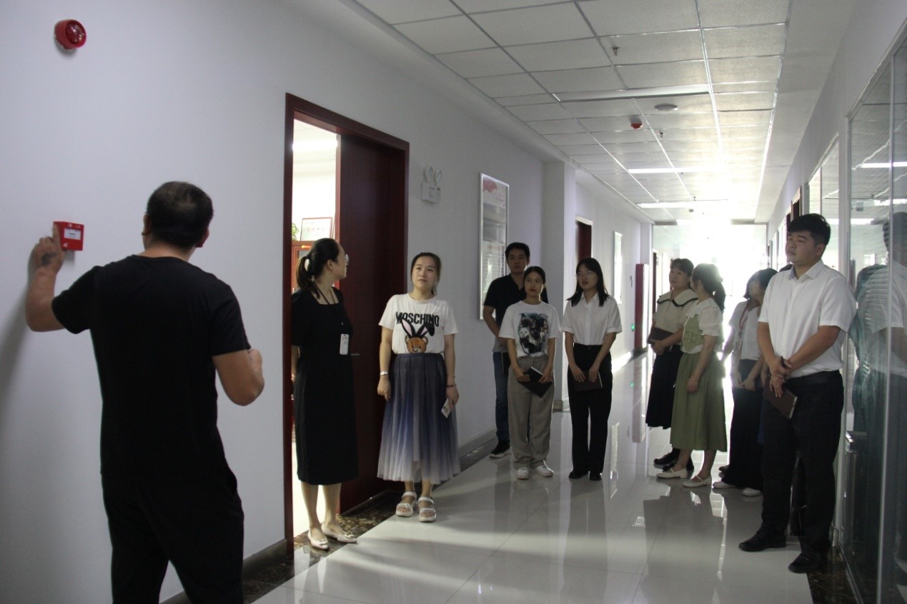演練開始由消防工程師為大家講解辦公樓內(nèi)各種滅火設(shè)備的功能及使用方法,以及如何做好防護(hù)避免受傷的注意事項(xiàng);現(xiàn)場(chǎng)演練了如何打開消火栓、拋開水袋、對(duì)接水槍口、打開閥門等消防器械重要部位的操作和動(dòng)作要領(lǐng)。然后組織員工迅速?gòu)牟叫刑莅踩行虺冯x,在逃生黃金5分鐘內(nèi)到達(dá)安全地帶。最后在辦公大樓西廣場(chǎng)現(xiàn)場(chǎng)示范了滅火器的正確使用方法,并由參加演練的員工進(jìn)行了實(shí)操體驗(yàn)。
