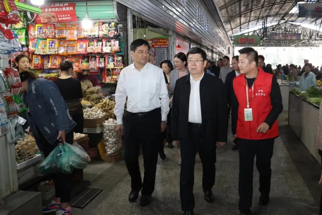 在鐘郢菜市場,任澤鋒邊走邊看,聽取市場改造提升及運營情況介紹,并與部分商戶親切交談。他指出,集貿(mào)市場是與群眾生活息息相關的重要場所,也是展示城市文明形象的重要窗口。要不斷鞏固提升集貿(mào)市場改造提升及環(huán)境整治成效,把市場秩序和環(huán)境衛(wèi)生規(guī)范好、管理好,營造干凈整潔、規(guī)范有序的市場環(huán)境。